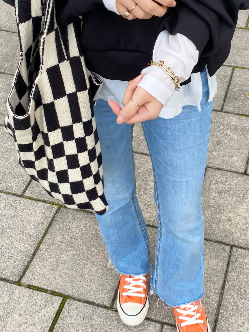 差し色にオレンジのconverseを組み合わせたカジュアル日🌿
