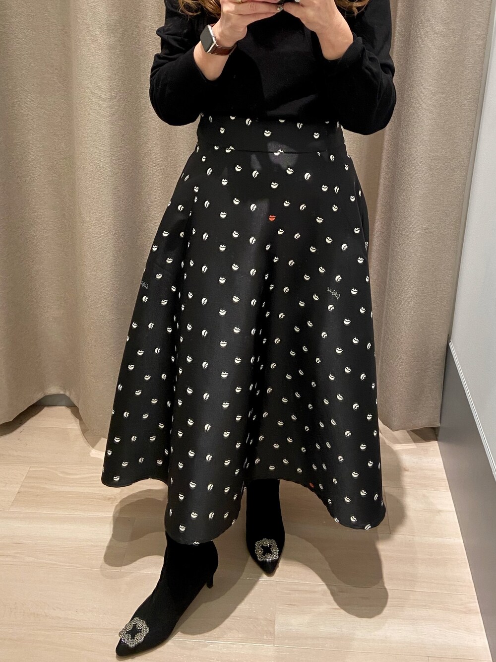 リップ柄に無駄のないシルエットのフレアライン 全て完璧なスカートです。一目惚れで購入〜!