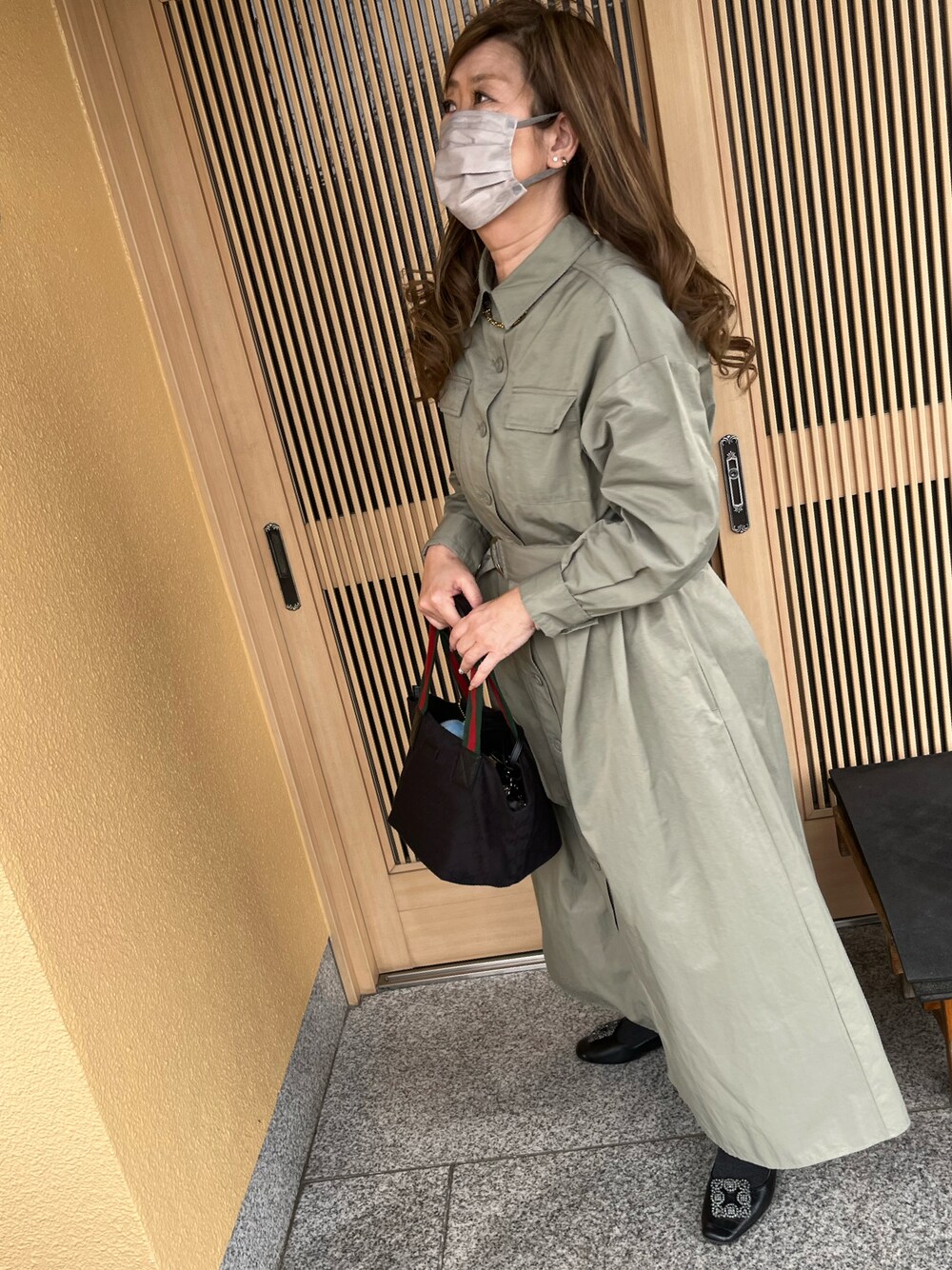 もっと暖かくなるかと思ったけど、寒い この上にいつものタトラスのパッカブルダウンを羽織ります。 ミリタリーなシャツワンピ。張り感があって カジュアルだけどどこかフェミニン。
