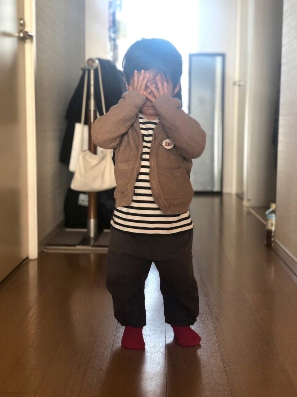 Bくん、お正月スタイル いつもの服に2020年ブローチつけただけ… 関係ないけど、超極暖ってめっちゃあったかくないですか…? 毎日の公園がすごい楽勝に…🏆 あんなチート服があったとは…ありがたい…🙏