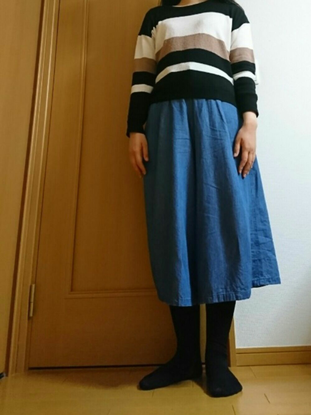 mio_seeのニット/セーター「マルチボーダーニットプルオーバー」を使ったコーディネート