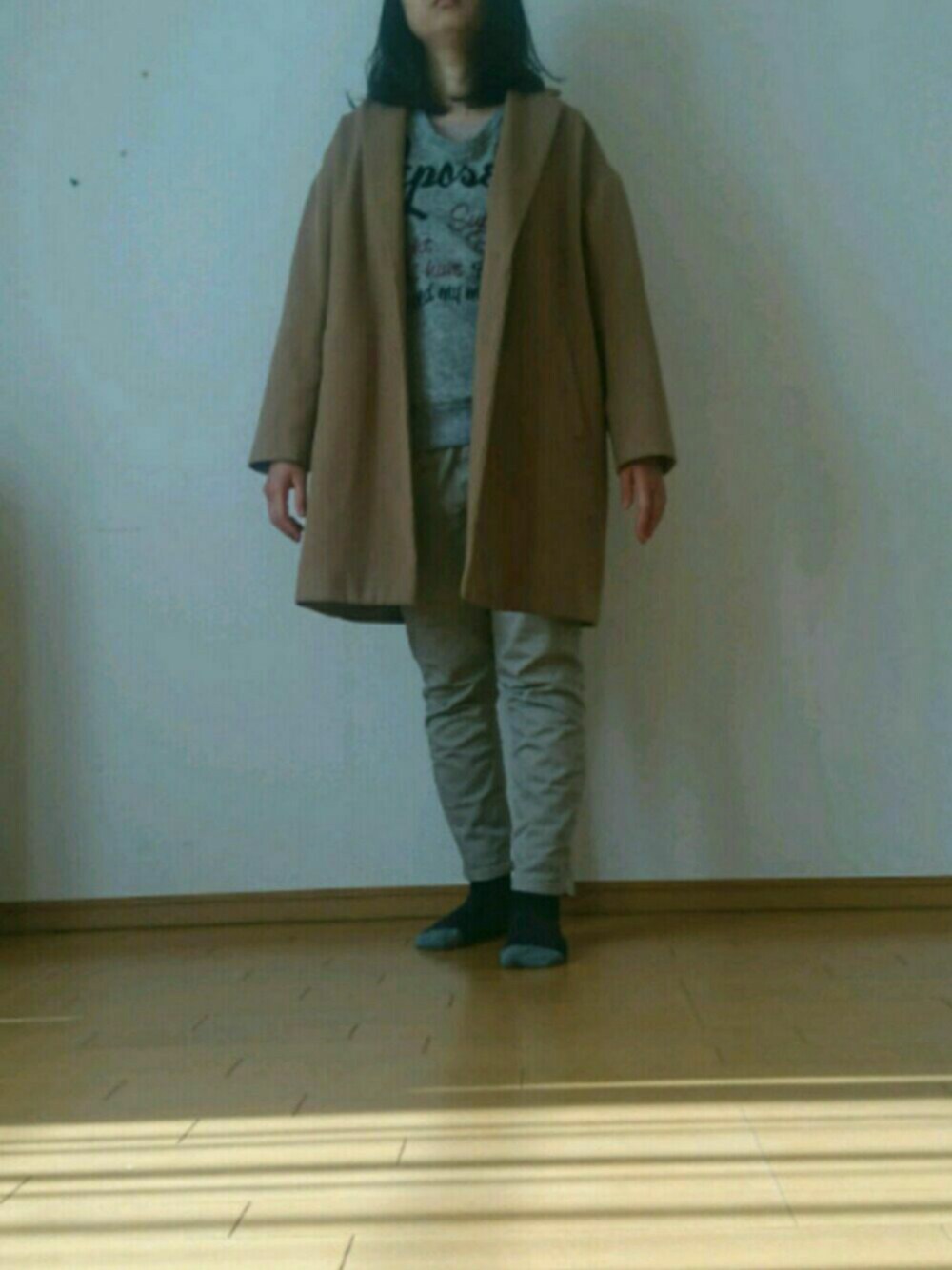 キャメルのコート。 ボーイッシュにもガーリーにもコーディネートできるのでお気に入りです。 ふらっと散歩する時もサッと着られて楽チン。