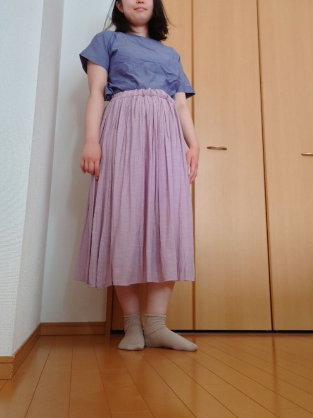 いいね、お気に入りありがとうございます。 ピンクのスカートをさわやかにコーディネートしました。