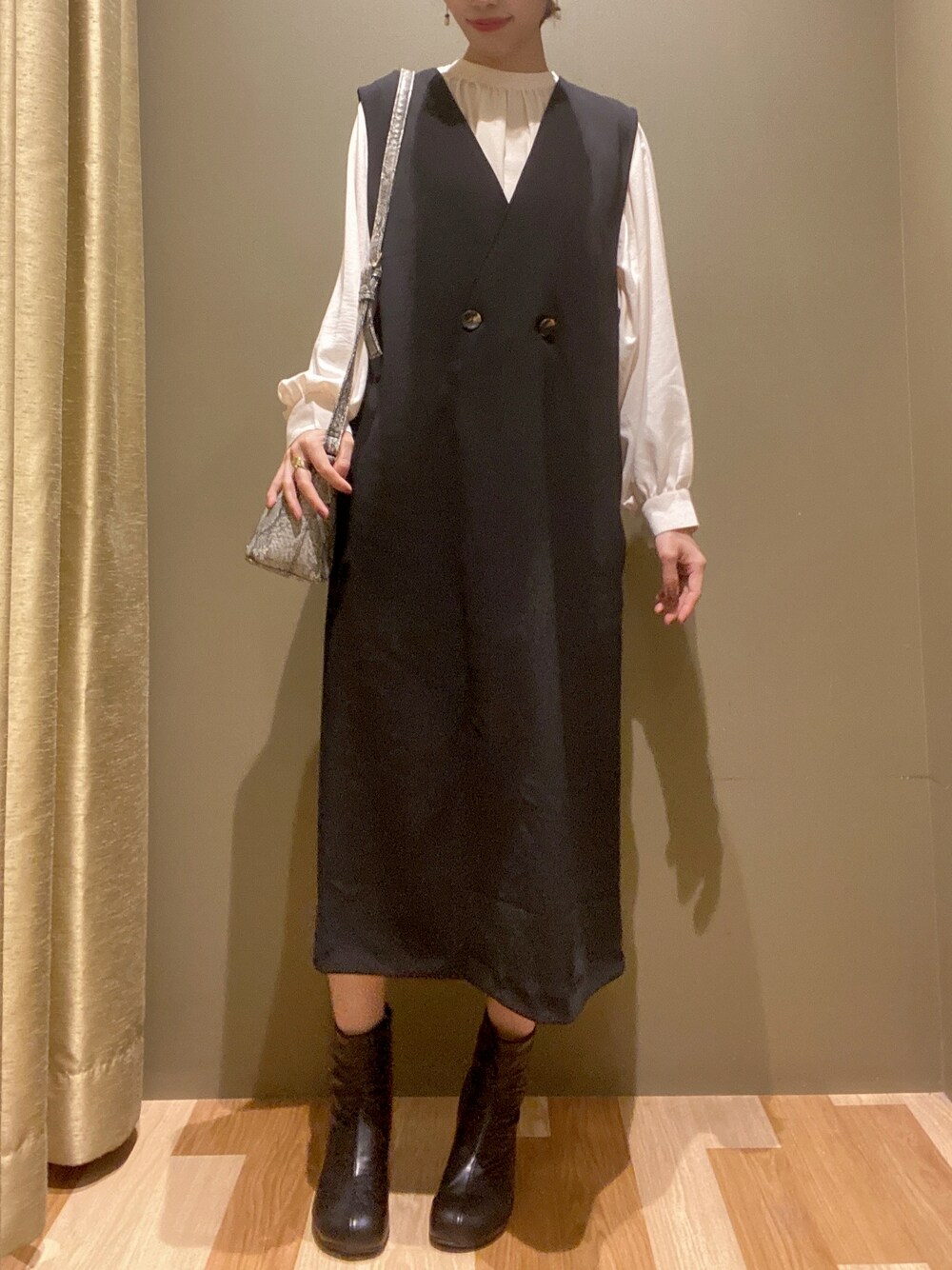 ご覧頂きありがとうございます🙇‍♂️!!!!!! 黒だと1枚でモードな雰囲気になる、かっちりワンピースです。 寒くなったらニット合わせしたい。