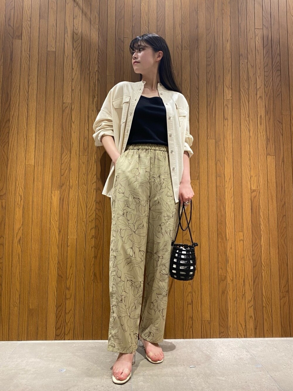 プリントパンツを主役に! デニムシャツは、トップスとしてはもちろん! 羽織りにすると今の季節大活躍なアイテムです!