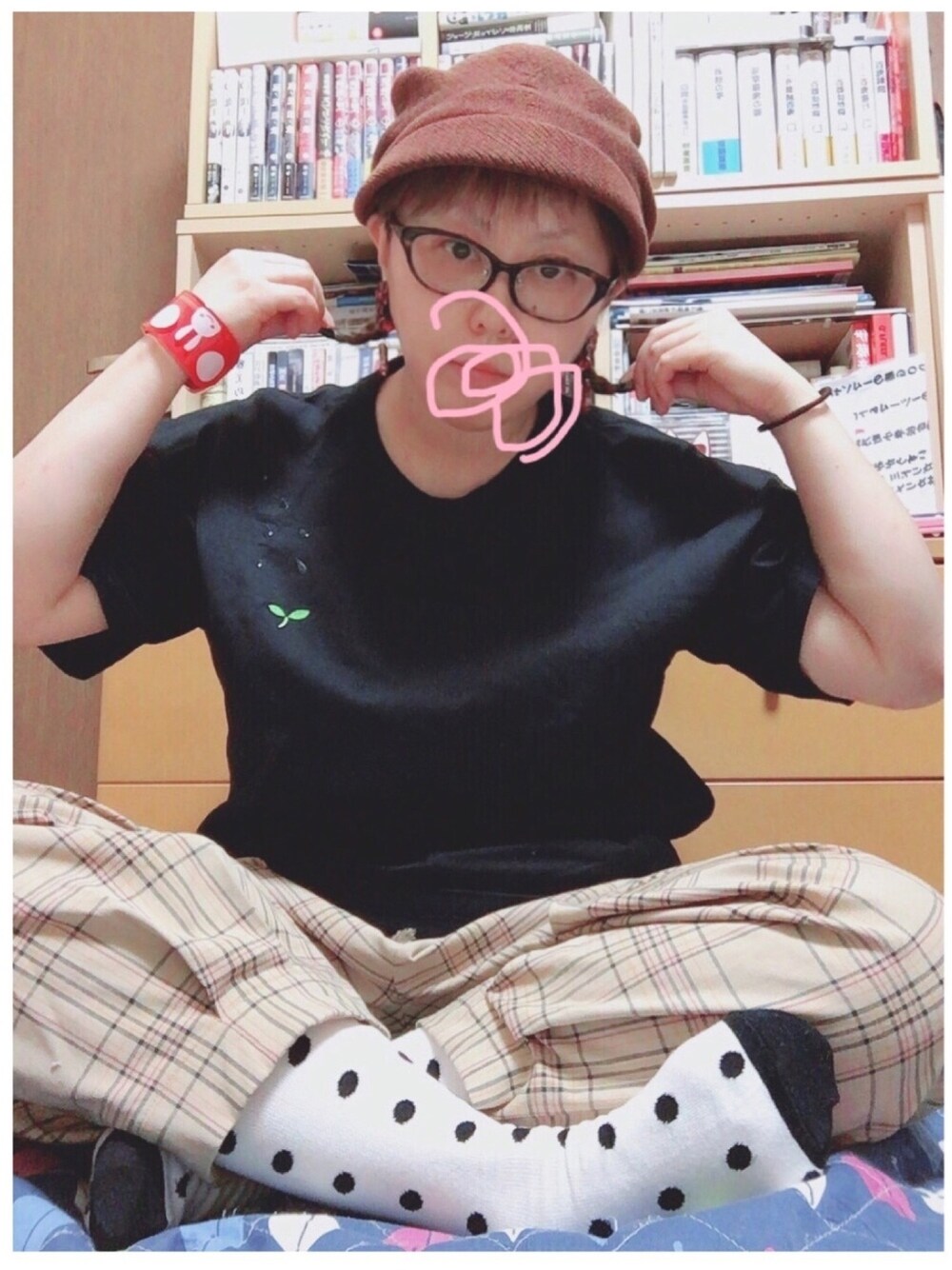 リラックススタイル。 「ゆるく実家へ帰らせていただきますコーデ」 実家めちゃ近なんで毎週末両親に娘の顔見せに行ってるだけなんですがね(´∀`) (=私が壊れるから休みに行かせてもらう) 夜中だと画質がどうしてもざらついて粗く暗くなるのでアプリでちと近付いて部屋の明かりをかなり明るくして撮影。(何してんの) スプラウトTの双葉🌱ちゃんにかかるリアルな水滴💦ちゃんが綺麗に写せて良かった(゜▽゜)☆*°