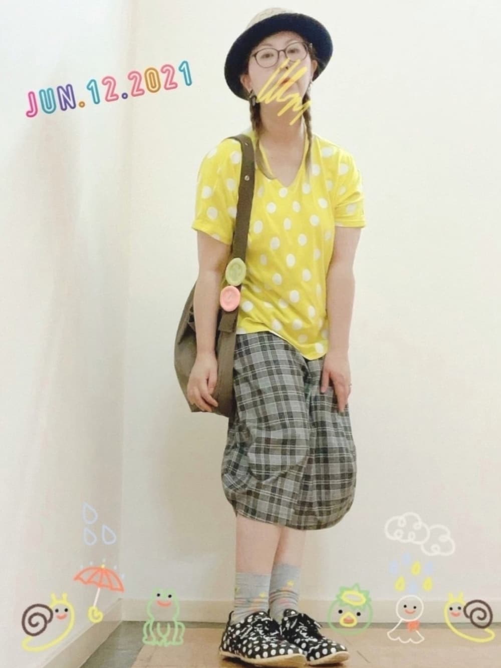 麒麟がキタ━(゚∀゚)━!!!!! (なんか首が長くて肩幅狭くてリュックサックが背負われへんで黄色できりんみたい🦒) 地味目なコーデだし突っ立ってるだけもなーと謎ポーズ。 Ri*ちゃんがイエローにグレー合わせしていて可愛かったので私も手持ちでやってみました。Tシャツの可愛さがこの謎ポーズだと分からないから小窓へどうぞ。
