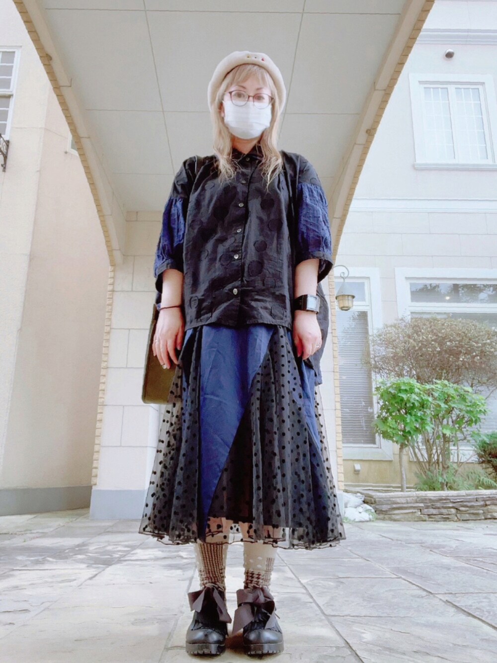 ローアングル。 偉そう…(偉くない) 新しいベレー帽が凄く気に入ったから同じFRAPBOISの新作多めにフラッグスカートとパッチグレンソックスと大好きなシェル。 髪の毛の色…画像加工で色とか編集した訳でも何でもなくこれ地毛。ホームカラーで随分髪の毛傷めつけちゃったな(´-` )
