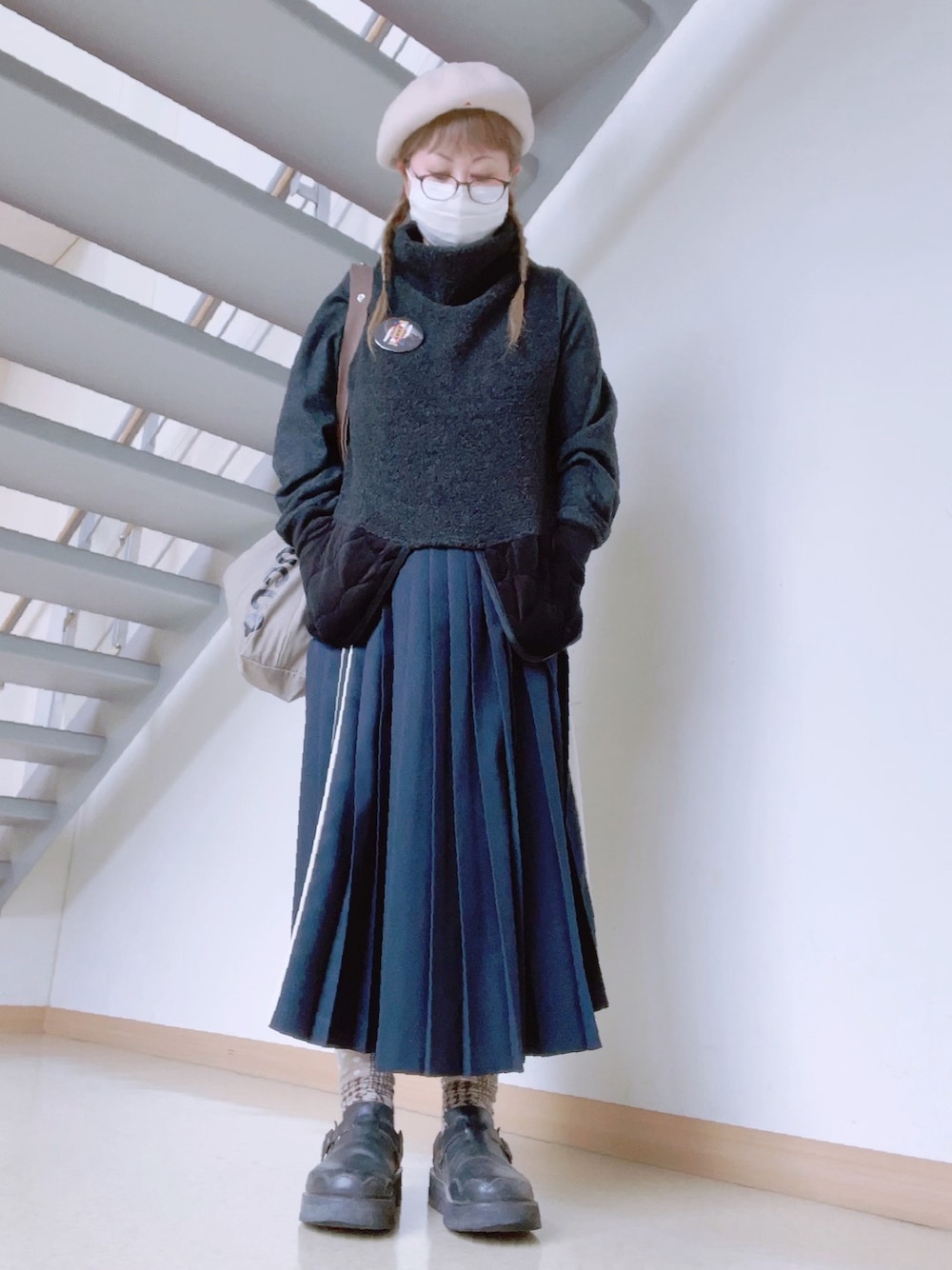 だるのハンチング/ベレー帽「リブベレー」を使ったコーディネート
