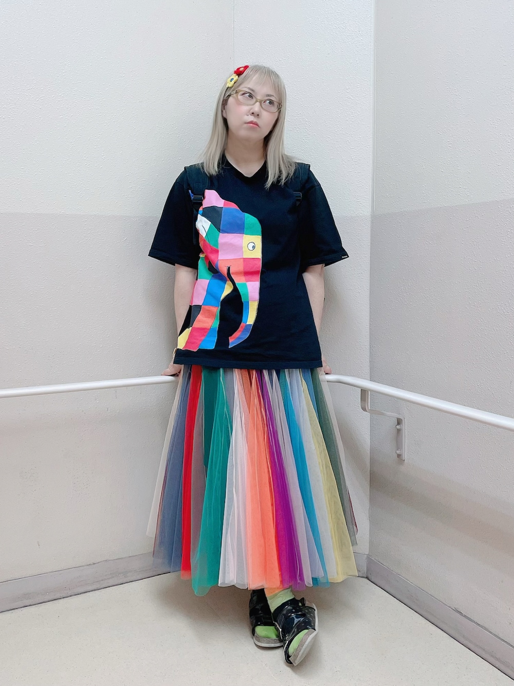 だるのスカート「ボリュームストライプチュールスカート」を使ったコーディネート