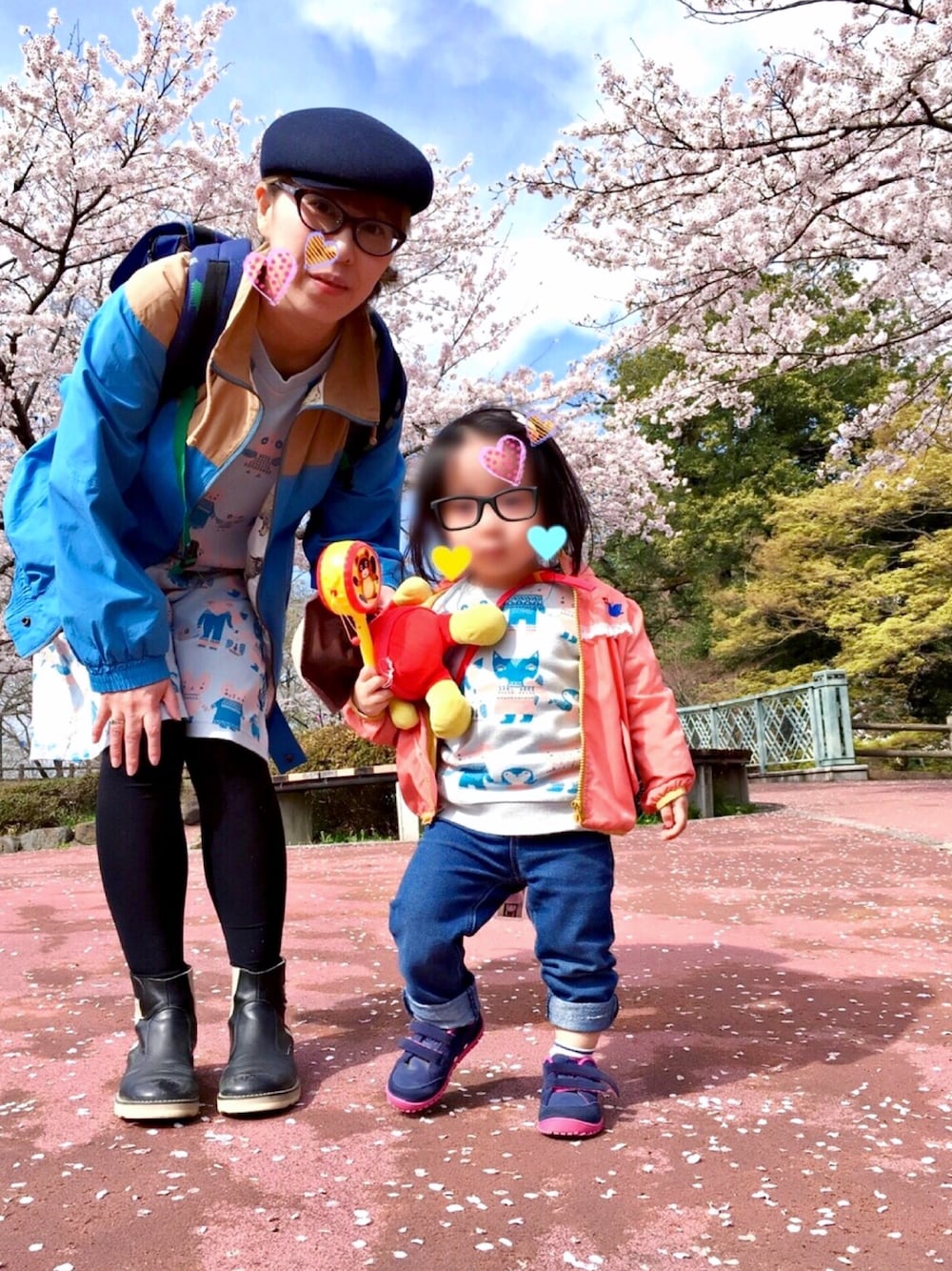 お花見してきました。 綺麗だったなぁ。 ❀* ❀。. ✿ * ❀ 。* ❀ ❀ * .❀ 。 ✿ * ❀ ❀ 。 ✿ * 。 ° 。 ❀ 。 ° ゚ ° 。 コーデは…どっかで見たことある? すみません…;; 親子でこの格好結構気に入ってるんです。 ぼ、ぼ、ぼ、帽子と娘のスニーカーが違うかなー?w 抱っこーってすぐ言われるから娘のジーパンの裾が片方ちょい上がりしてて「銃は持ってない」アピールみたいだけど違うし。あ、銃は持ってないけど!!! せっかくリンクやおそろいしてもすたすた歩き回るか抱っこなのでなかなか2人並んで写真撮れないから奇跡的に何とかそれっぽい写真撮れたのでupしちゃいますよ✲*゚