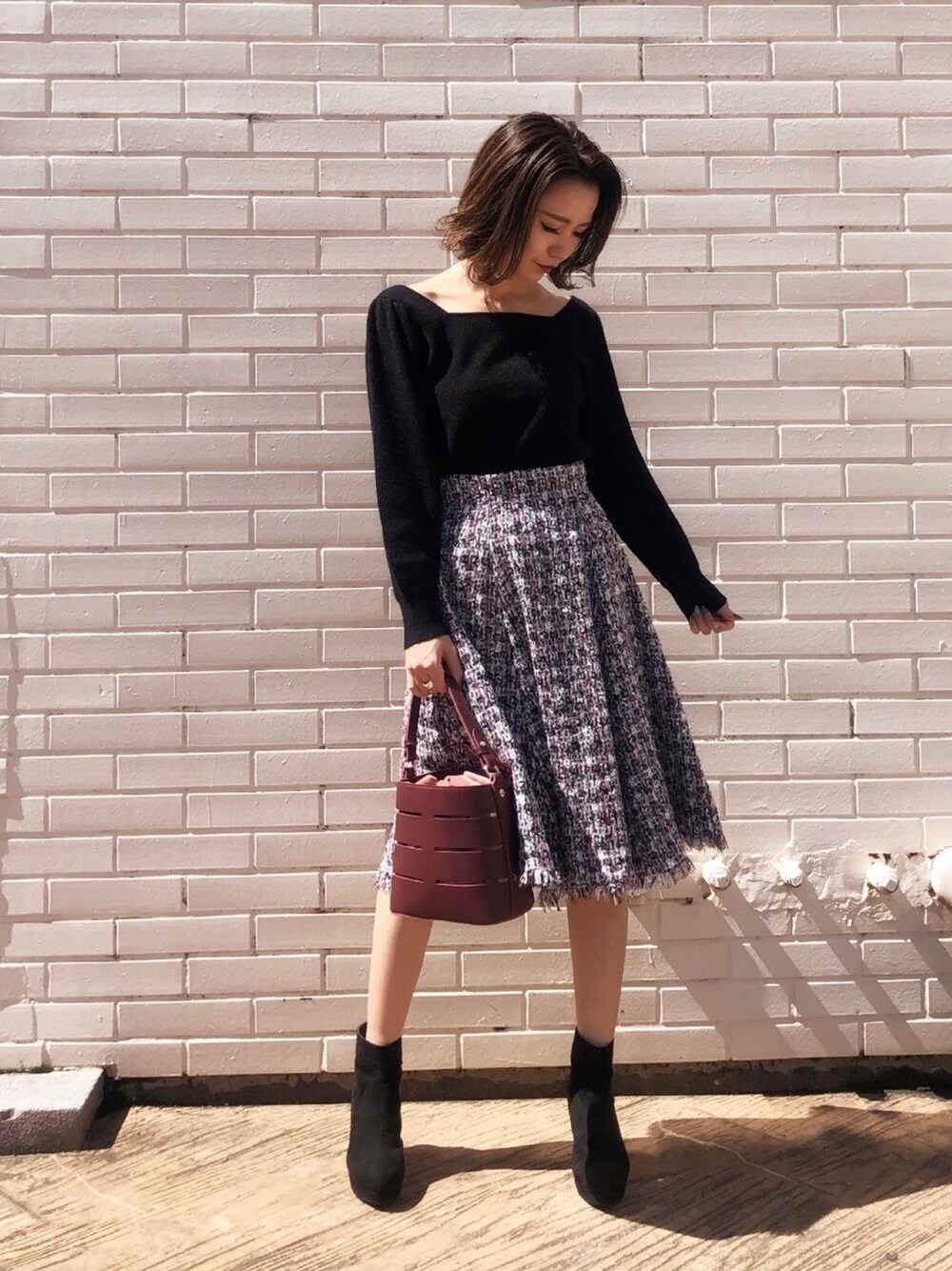 しみおのニット/セーター「2WAYスクエア7カラーニット」を使ったコーディネート