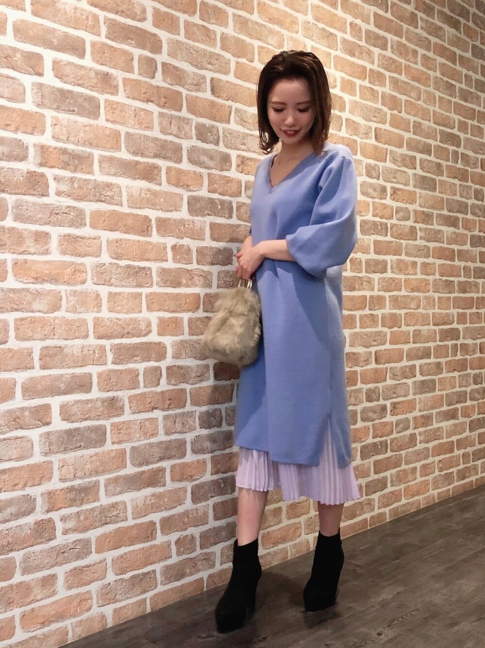 しみおのワンピース「リラックスVニットワンピースプリーツペチスカート」を使ったコーディネート