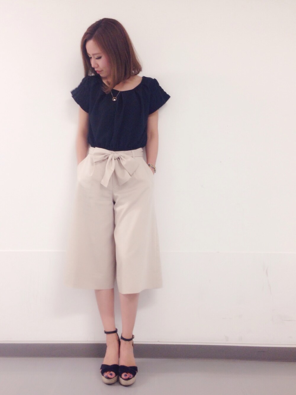 シンプルコーデ☻ この前のトップスの色違い💁 今日はガウチョパンツと 合わせましたー( ´ ▽ ` )b