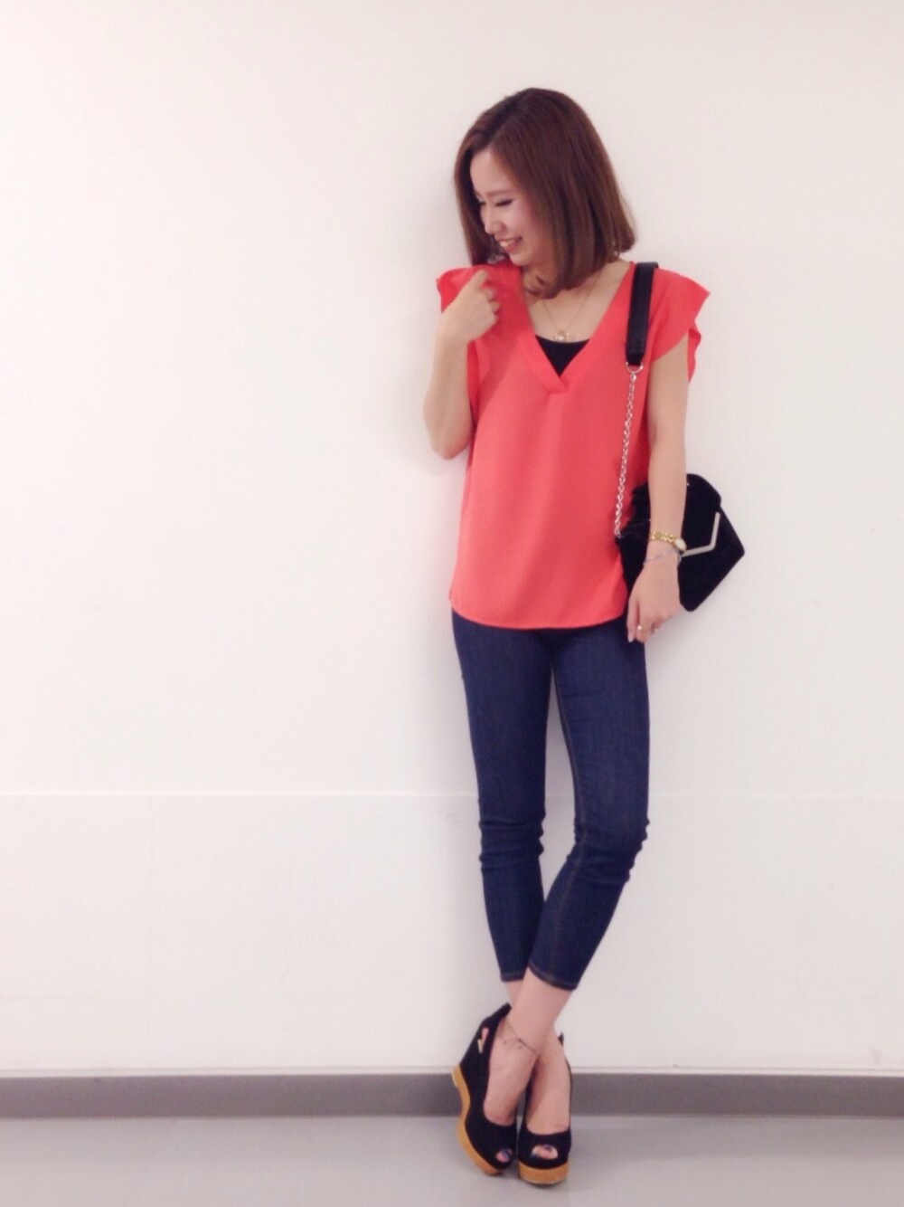 オレンジ色着ると元気になるー👍 夏らしくて好きです☻