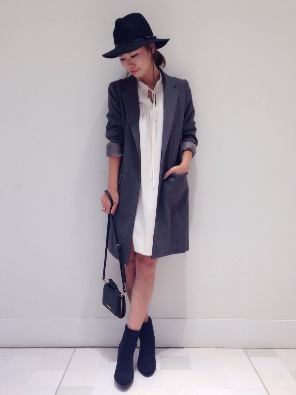 しみおのハット「リボンフェルトハット」を使ったコーディネート