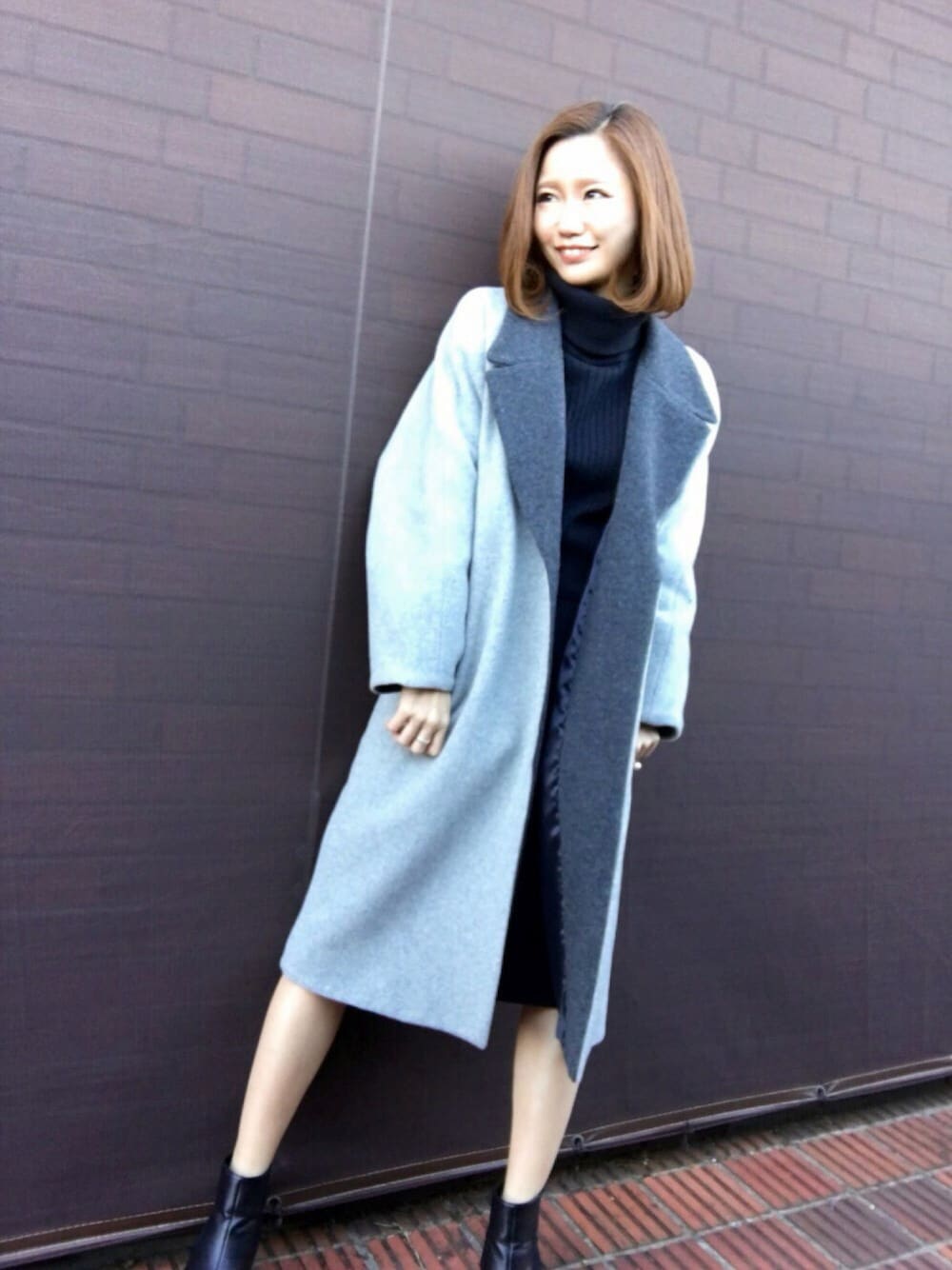 しみおのジャケット/アウター「ウール配色ロングガウンコート★ポイント10倍★《予約アイテム》」を使ったコーディネート
