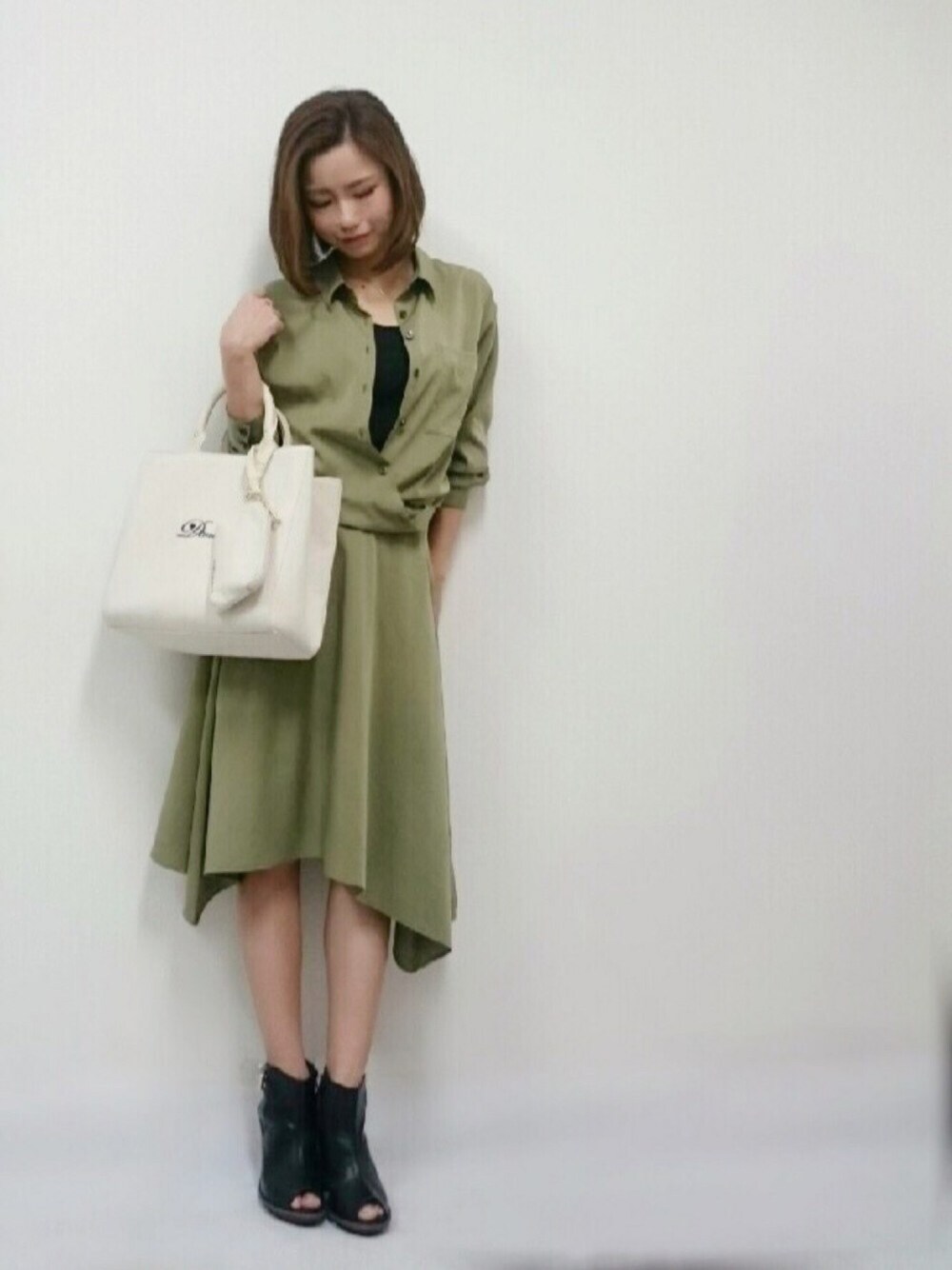 しみおのワンピース「テンセルツイル切替シャツワンピース」を使ったコーディネート