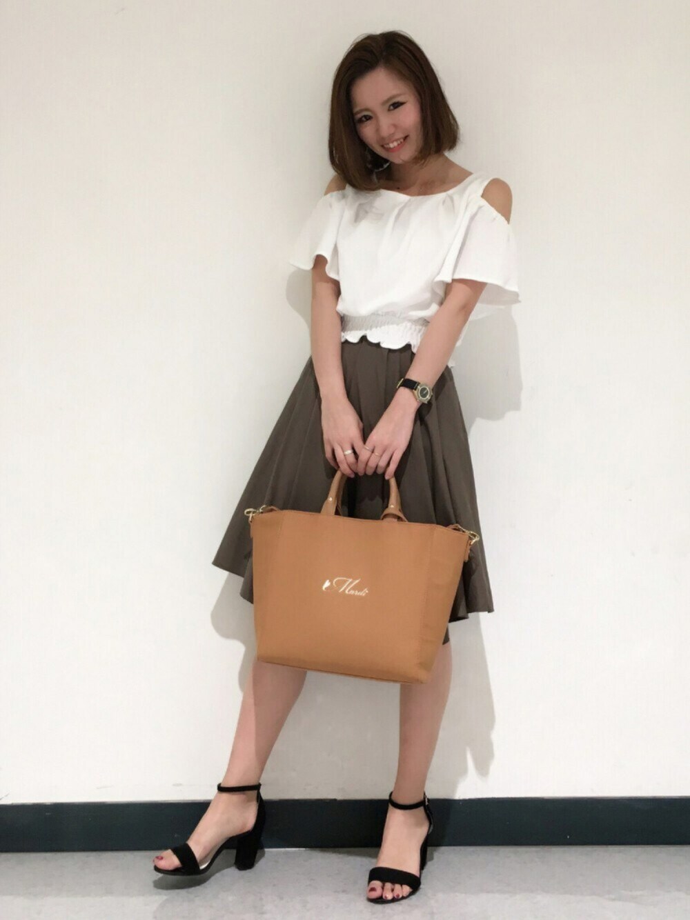 トップスはトレンドのオープンショルダー💁💕 白×カーキは最近好きな色合わせ♡ 💜31filles Blog💜 http://s.ameblo.jp/31filles/ 💛Instagram💛 shimio31