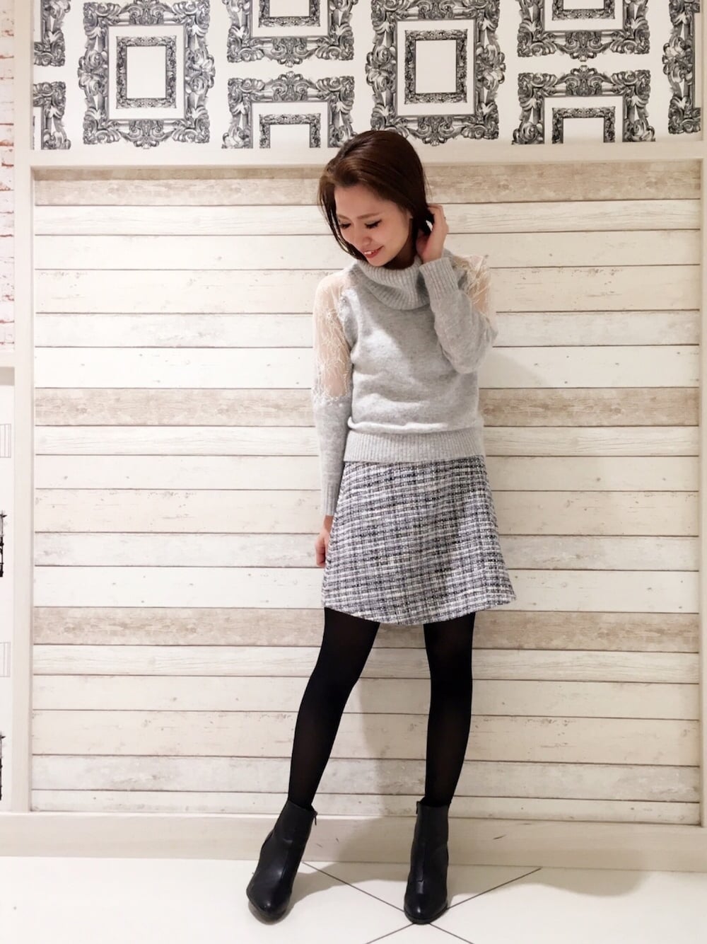しみおのニット/セーター「アンゴラ混肩レースプルオーバー」を使ったコーディネート