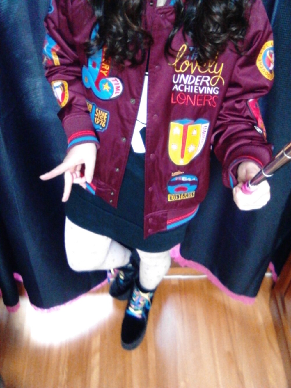 実家に自撮り棒があったから拝借(笑) NIKE×パーラのお気に入りのスタジャンを自慢したかっただけです。