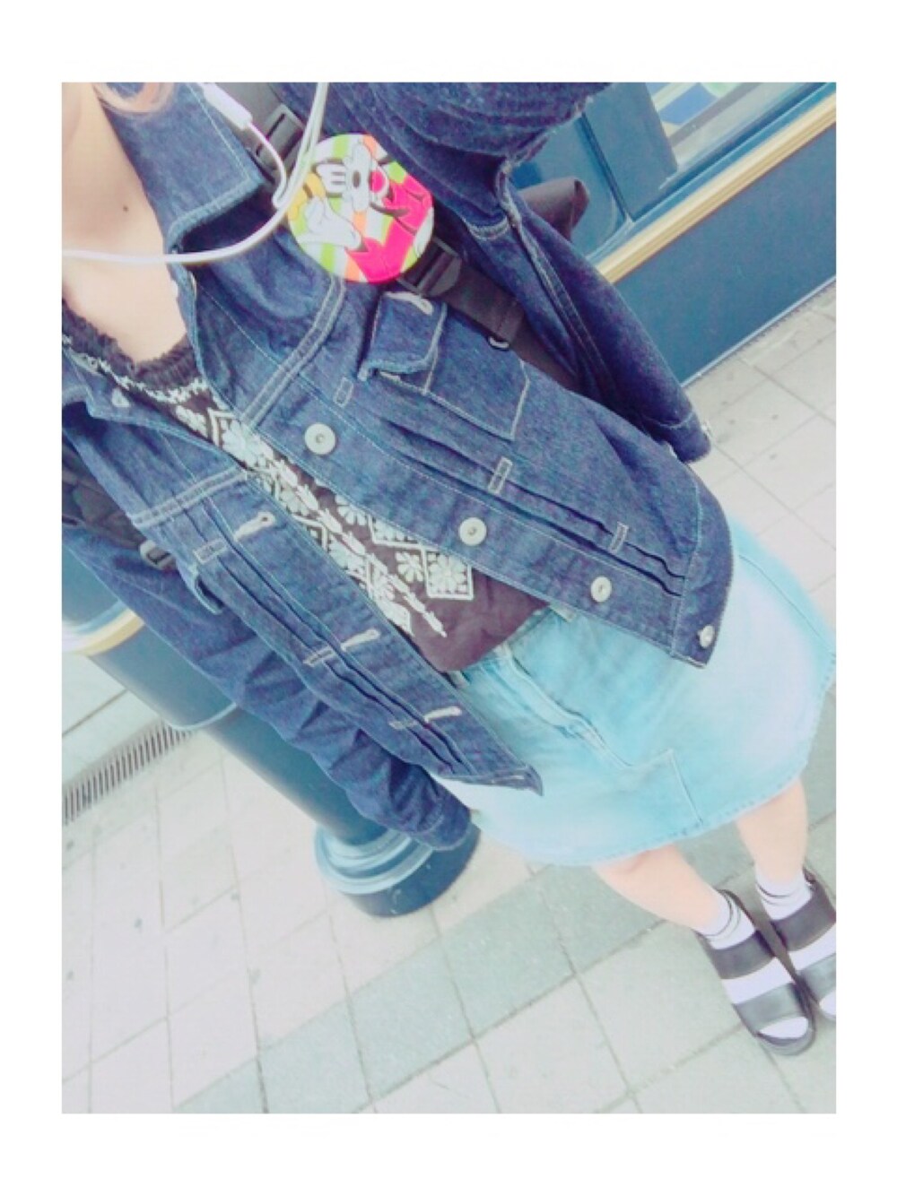 刺繍ブラウス着回し② デニムスカートと