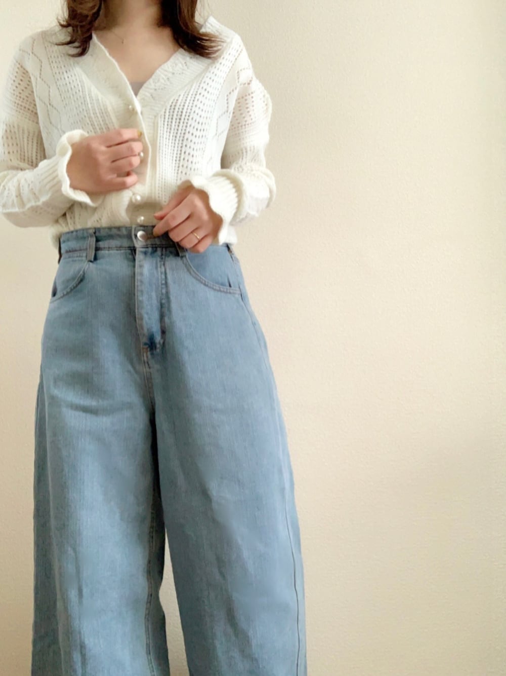 azu...【相互】のデニムパンツ「すそフリンジデニムワイドパンツ」を使ったコーディネート