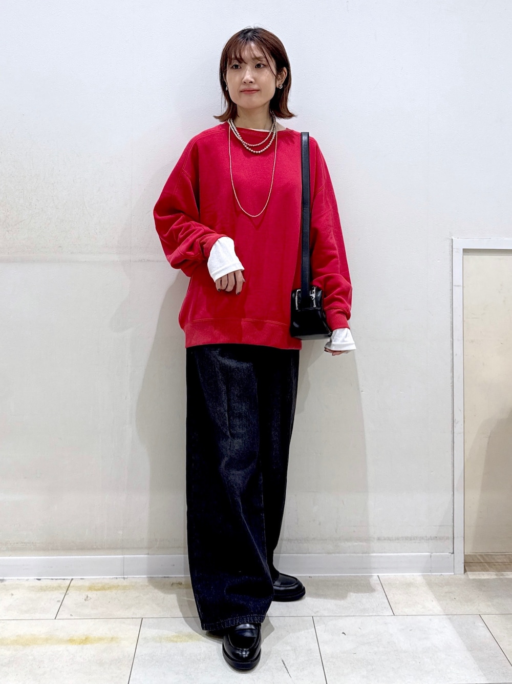 赤のスウェットを使ったお気に入りコーデ🍒 シアートップスをレイヤードしたのがポイントです🪄