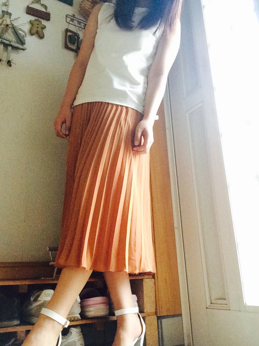 ホワイト✖️キャメル ずっと昔に履いてたスカートリメイク👗
