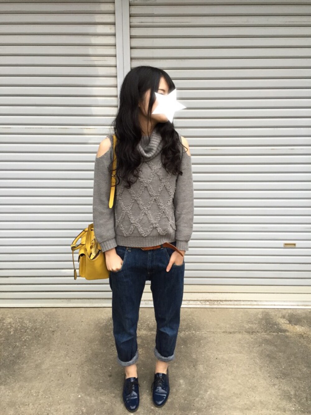 肩あきニット好きやけど寒い(´・_・`) 肩あきのヒートテックあればいいのに! 写真では分かりにくいけど サルエルジーンズは学生の時に買ったやつ☻ 今でも良く着てます♪