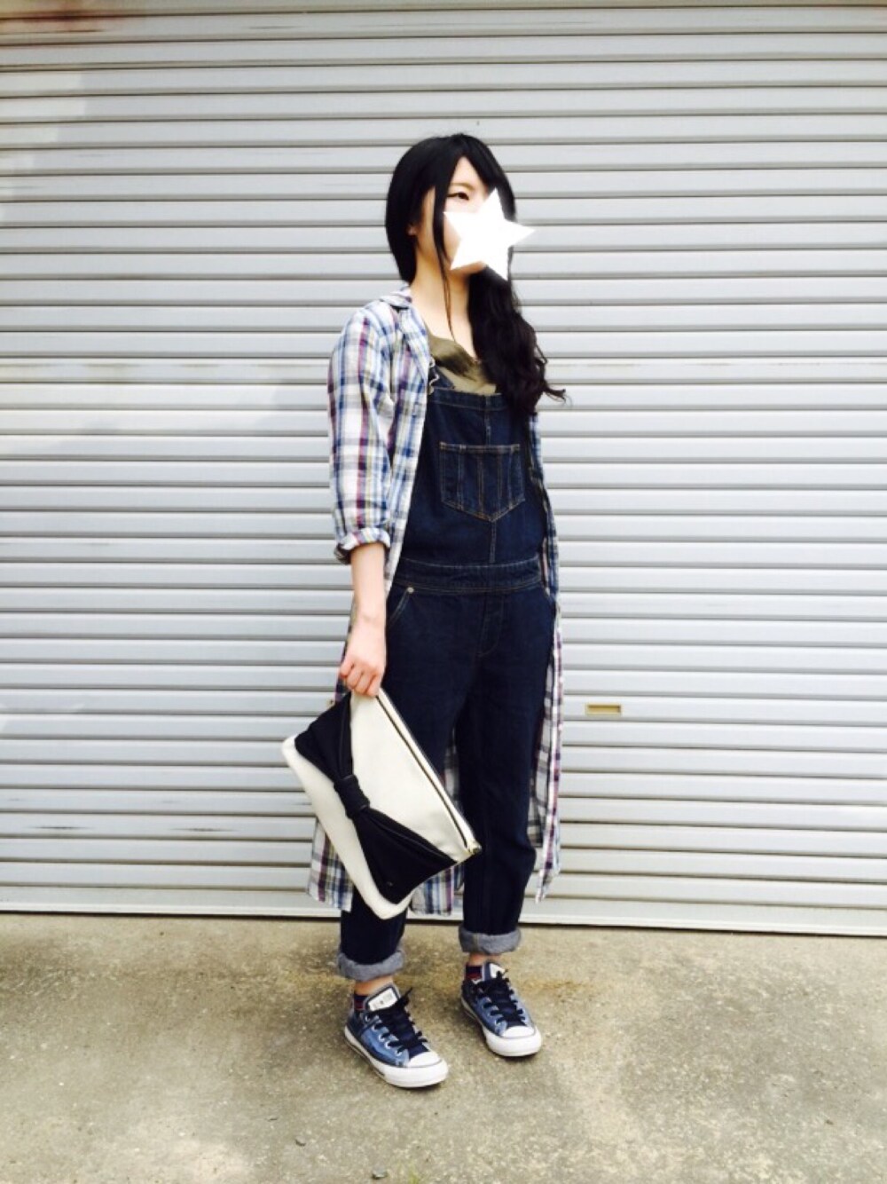 今週の土日はゆるゆるオーバーオール☻ スニーカーとバッグ同じ☻笑 くるりライブ行きたかったなー