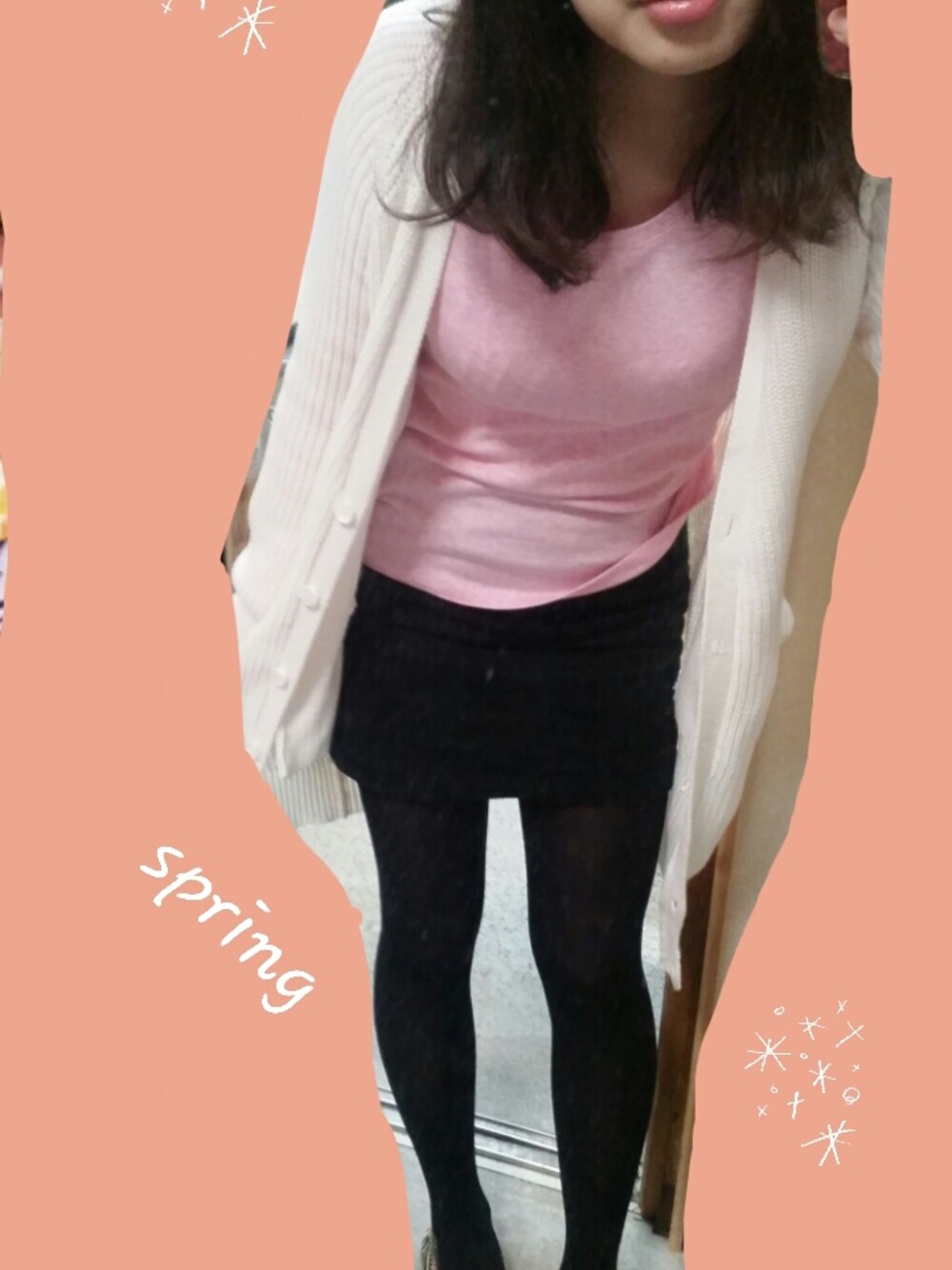 春♡ ピンクのカットソー♡ UNIQLO 白のロングカーディガン♡ LOWRYS FARM スカート♡ ROSE BUD くつ♡ H&M デート♡