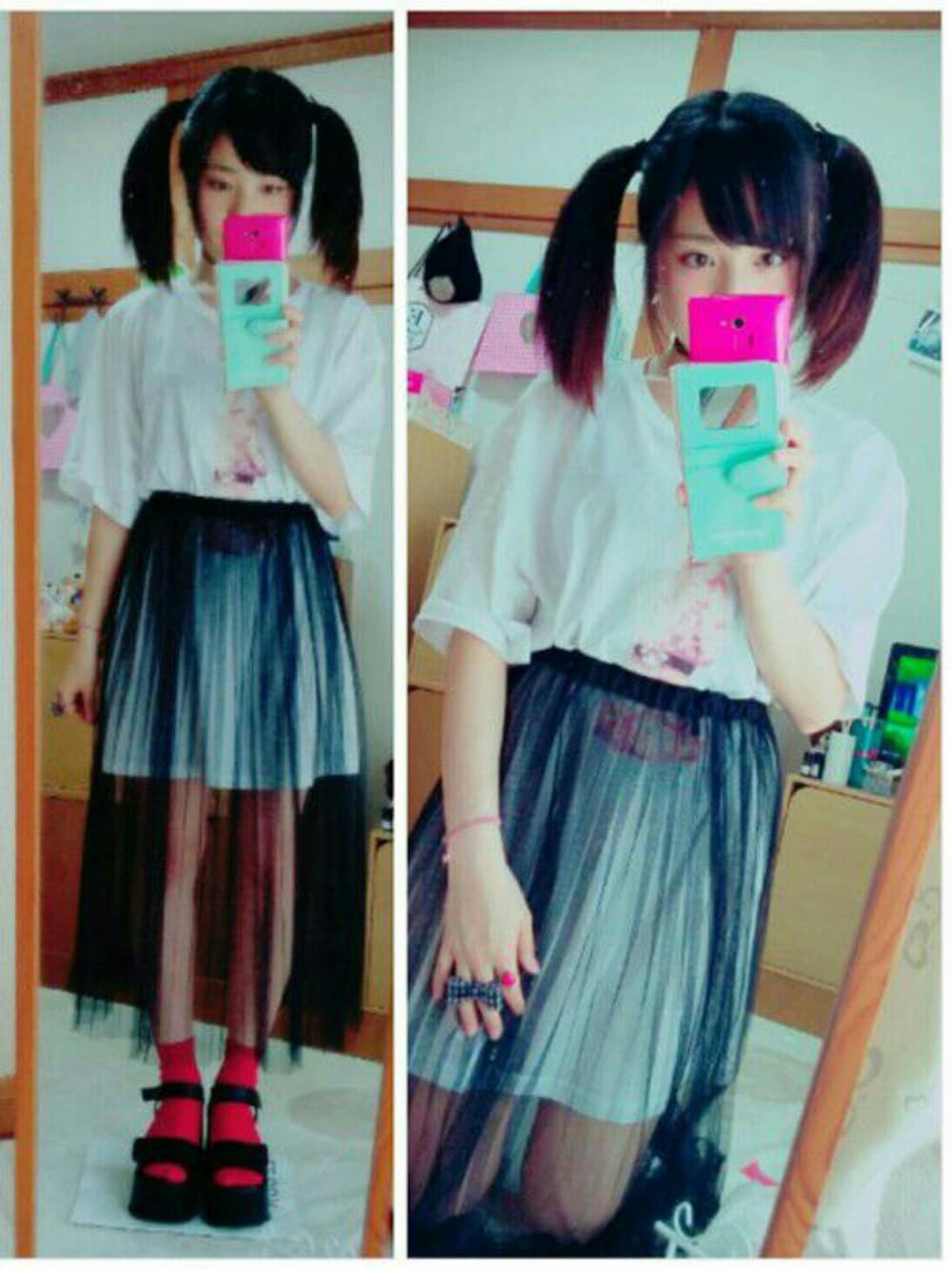 個性的なのかセンスがないのかどっちなのか Tシャツワンピの上にシースルースカート?をはいてみた・・・謎