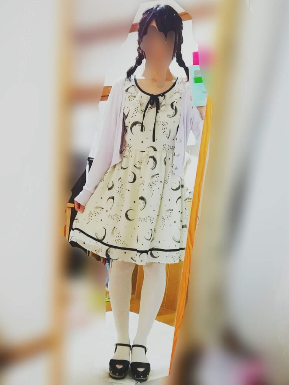 個展に行こうとしたのですが、ギャラリーの前に行ったら既に終了してました・・・。 出展されたイラストレーターさんが、ロリィタちゃん系のイラストを描かれるので、そんな雰囲気のお洋服。 お花を見て紫と黄色の組み合わせって可愛いなーと思い、この組み合わせにしました。この色の組み合わせ好きです。