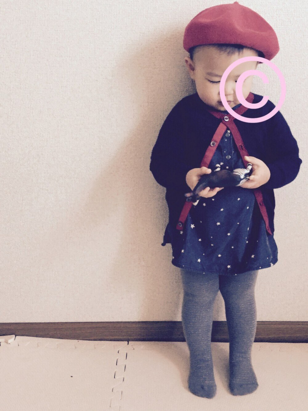 お気に入りだから着せてみたけど さすがにsize70は厳しいな…(˃̣̣̣̣̣̣⌑˂̣̣̣̣̣̣ )
