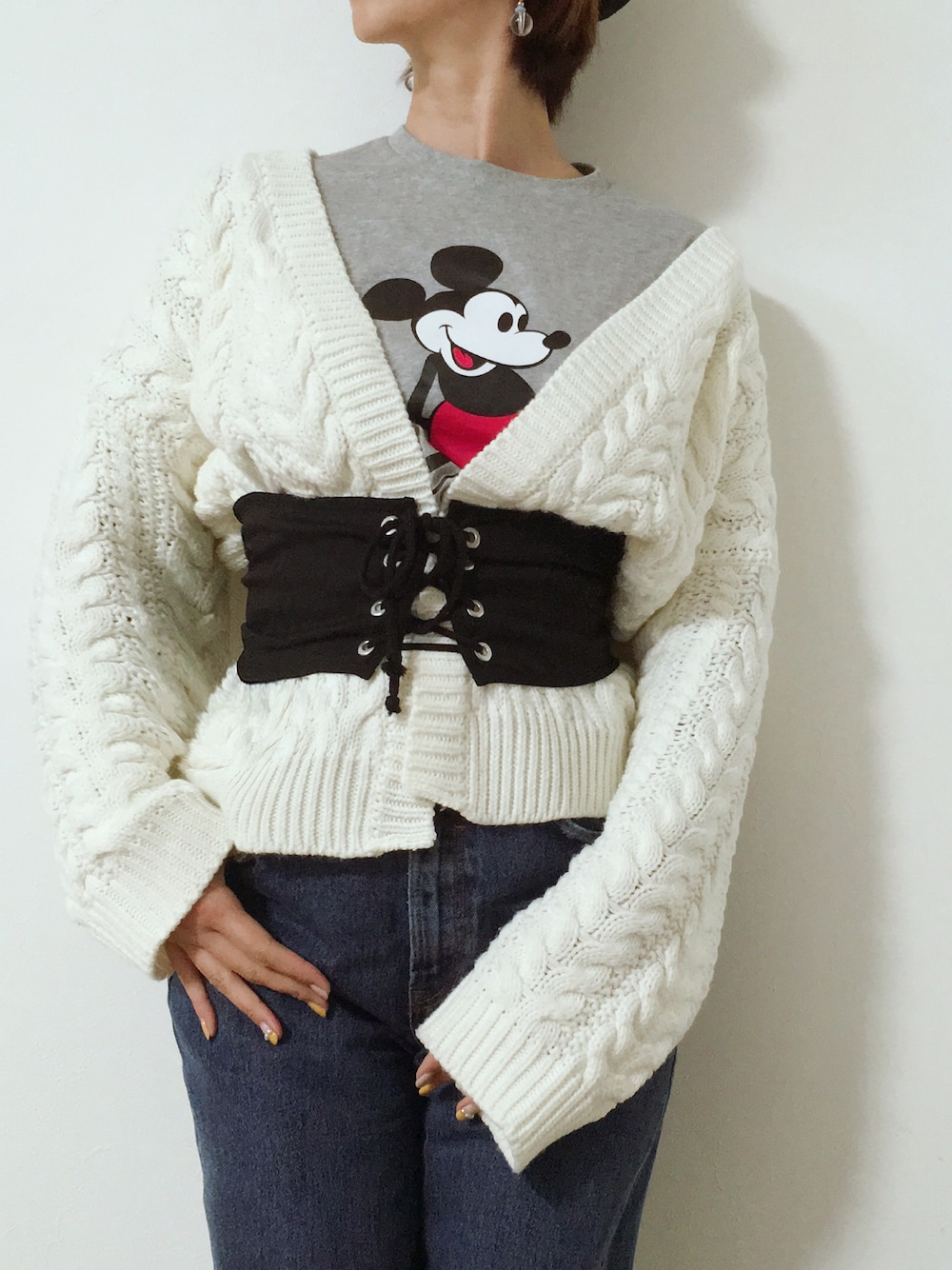 ユニクロメンズのパックミッキーT コルセットに合わせたかったの