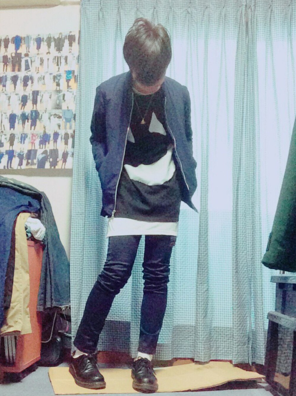 久しぶりのレイヤードスタイル今年はなんとなくですがアウターからはみ出るくらいのビッグシルエットのTシャツを着てるのがトレンド感出ると思います 笑