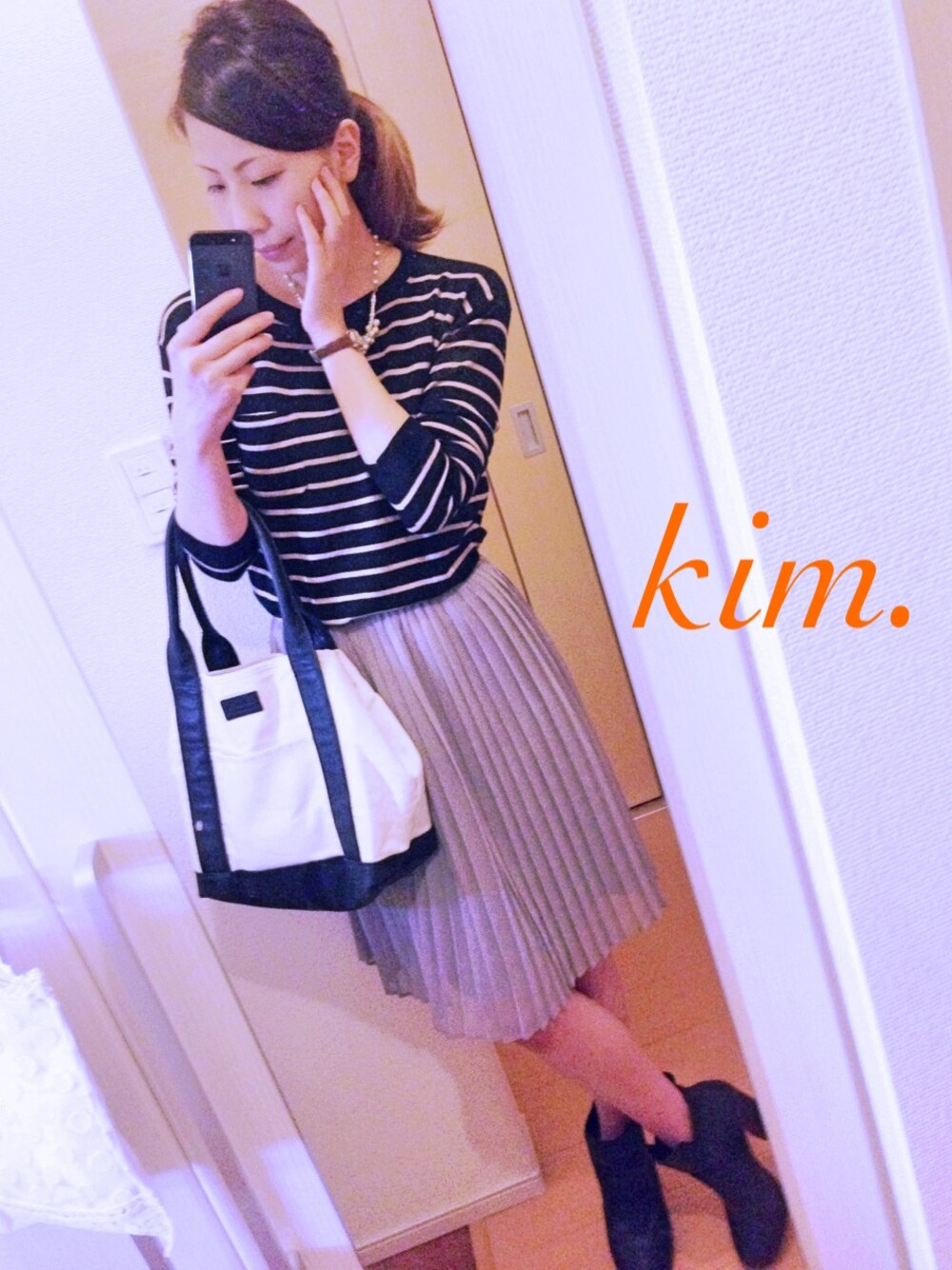 kimのトートバッグ「PUハンドルキャンバストート 549954 」を使ったコーディネート