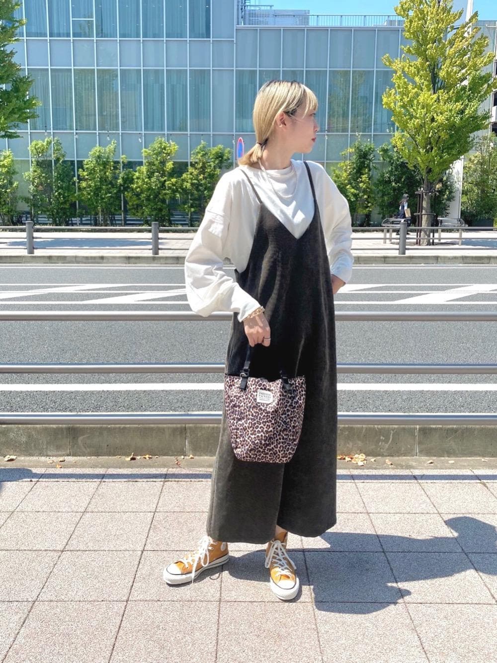 身長168cm 【普段サイズ】 トップス38/ボトムス38/シューズ24.5cm 【着用感】 トップス :袖ゆったりめ ワンピース:標準的 シューズ :標準的 【コーディネートポイント】 マスタードカラーのコンバースを中心に秋カラーのアイテムを取り入れた楽ちんカジュアルスタイル。シンプルになりすぎないようにレオパードのバッグやゴールドのアクセサリーでバランスをとりました。