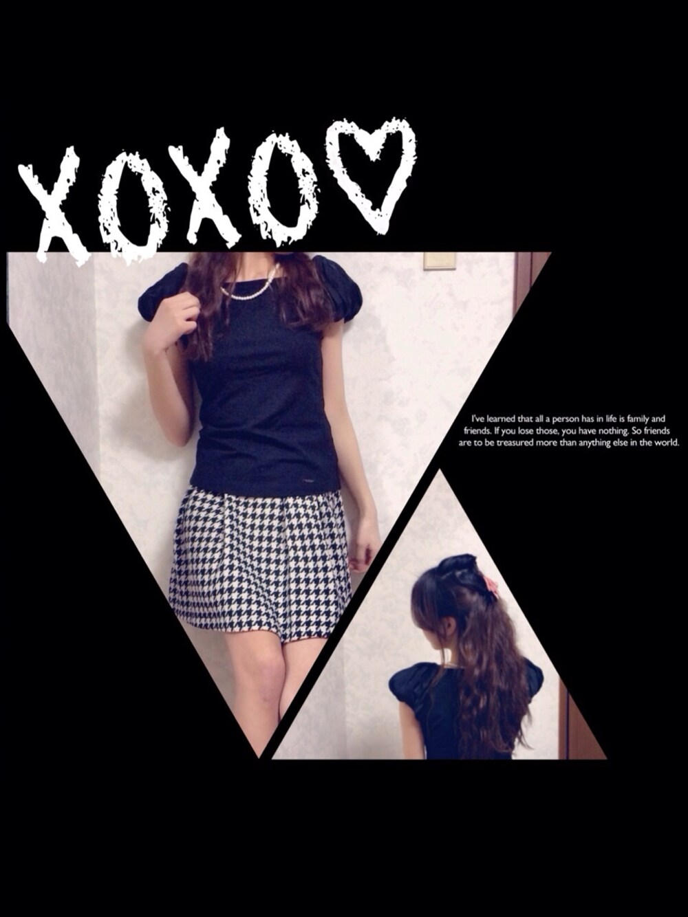 今日は大人っぽく!千鳥柄のスカートと黒トップスをあわせました*袖のシフォンがお気に入り◎