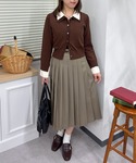 今季トレンドのミディ丈プリーツはAラインシルエットで大人っぽく上品な印象! ショート丈のレイヤートップと相性が良く、脚長効果抜群です♪