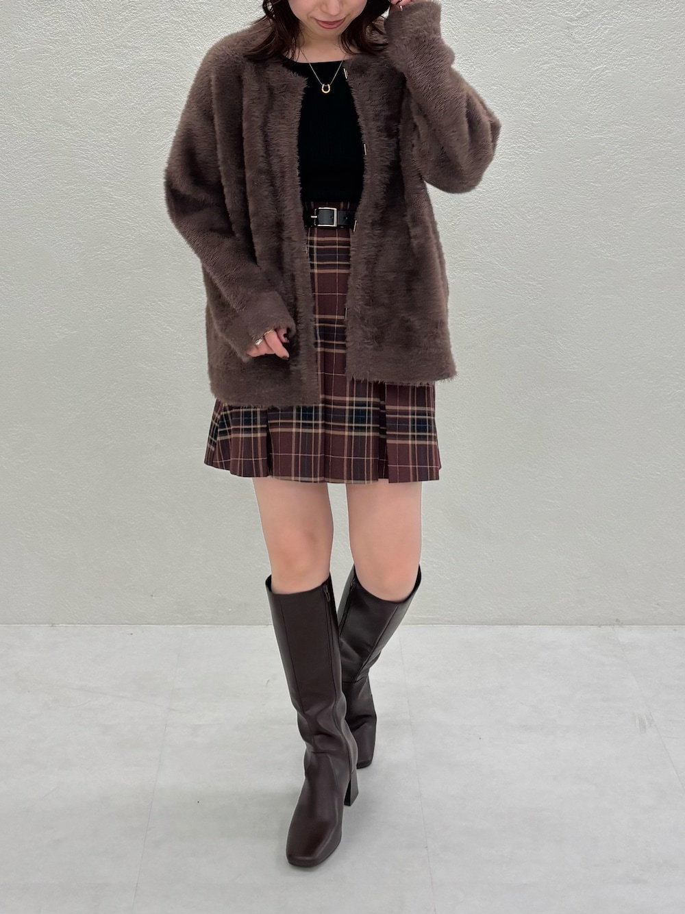 可愛いだけじゃない、もふもふした触り心地にもっちりした生地が特徴的なコーディガン♪ 人気のチェック柄合わせでワントーンコーデがおすすめ◎
