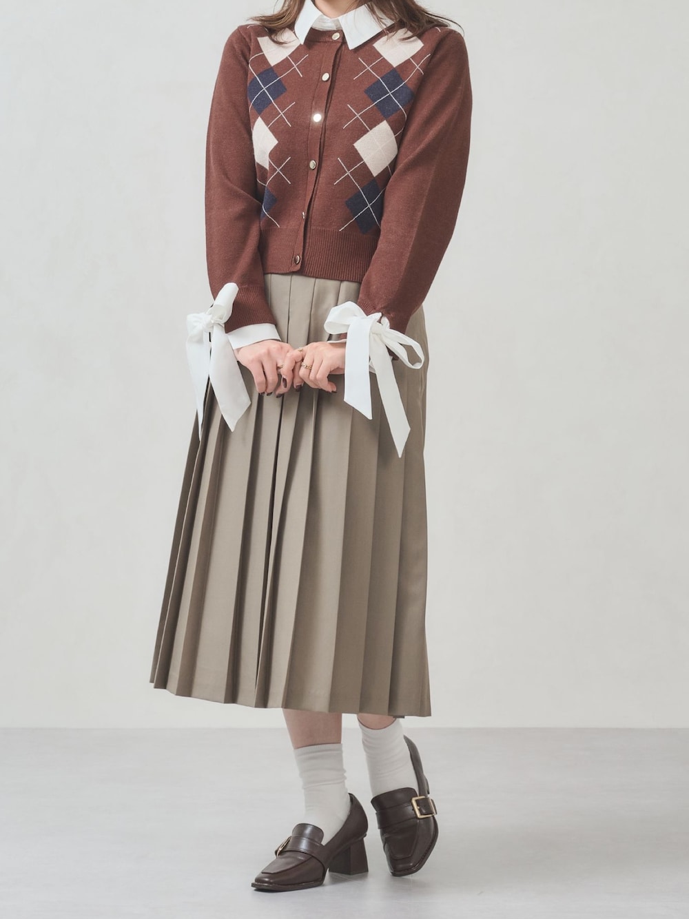 襟と袖が着脱可能な2wayタイプ! アーガイル柄にミディ丈のスカートを合わせる事でレトロな雰囲気が流行🤎 ワントーンコーデがおすすめです♪
