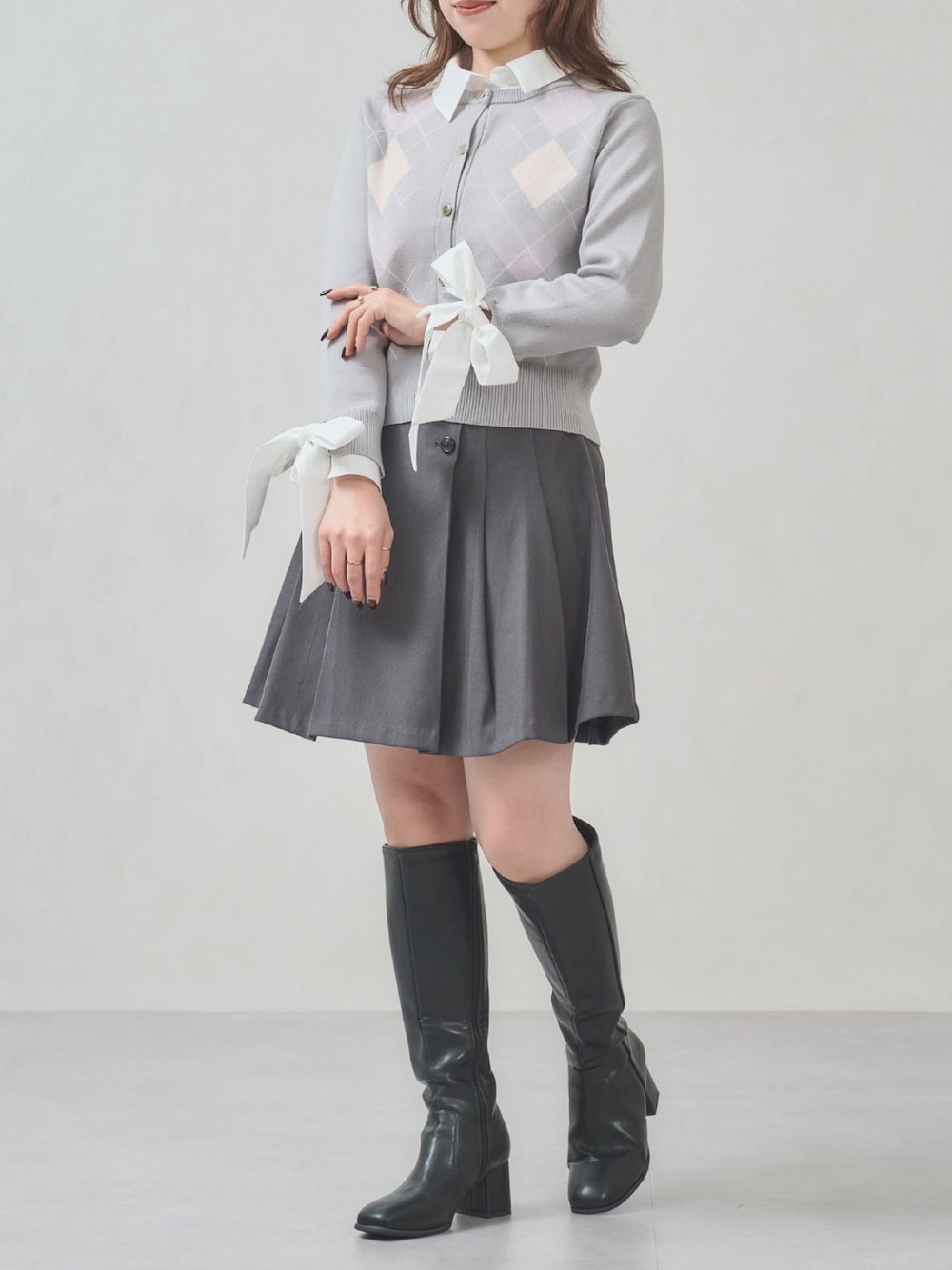 襟と袖が着脱可能な2wayタイプ! グレーコーデで華やかな印象◎