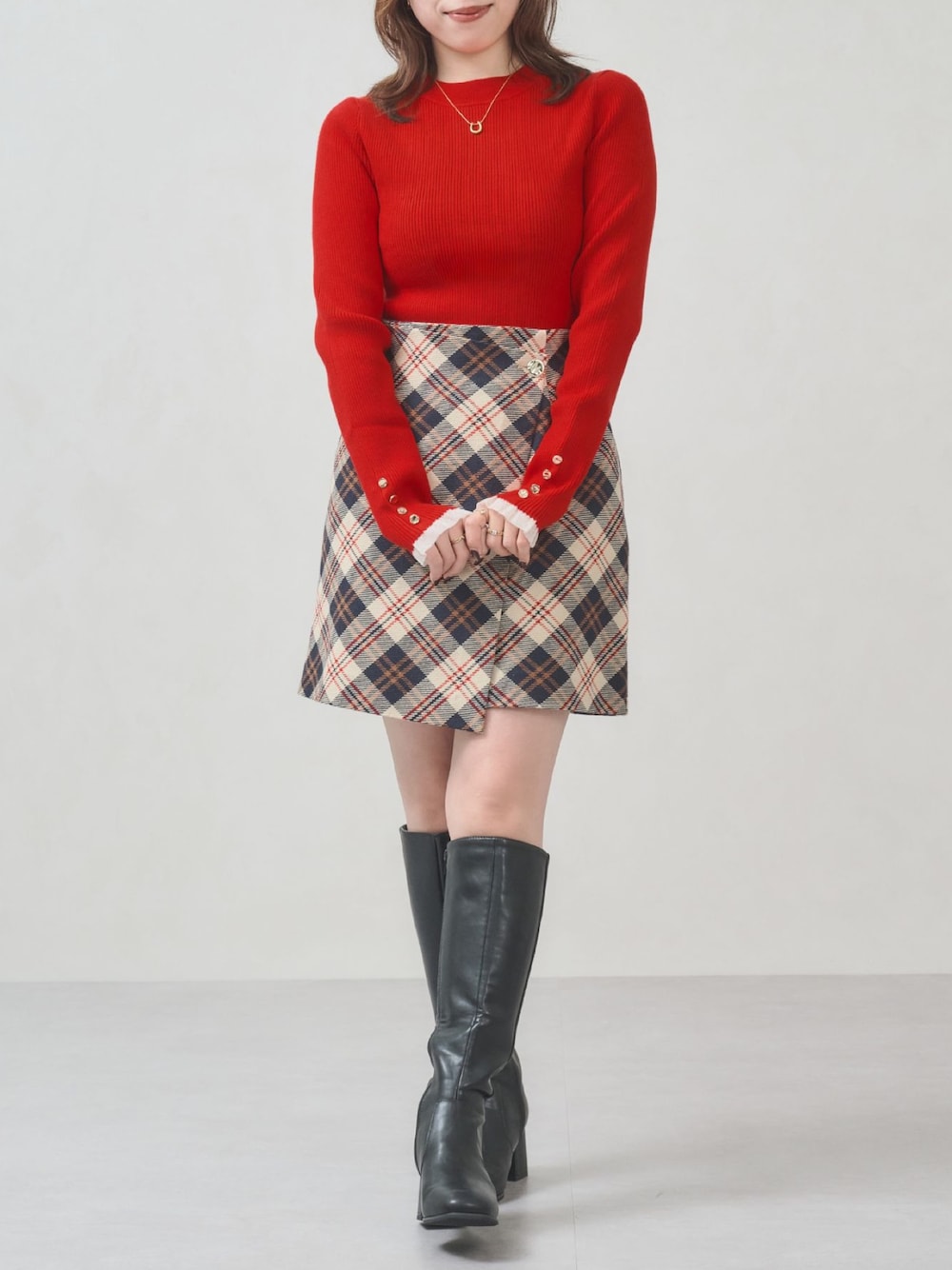 レッドが差し色に🎀 袖口がフリルでさりげなく可愛い✨ アウターはジャケットやダウンでも相性抜群です♪