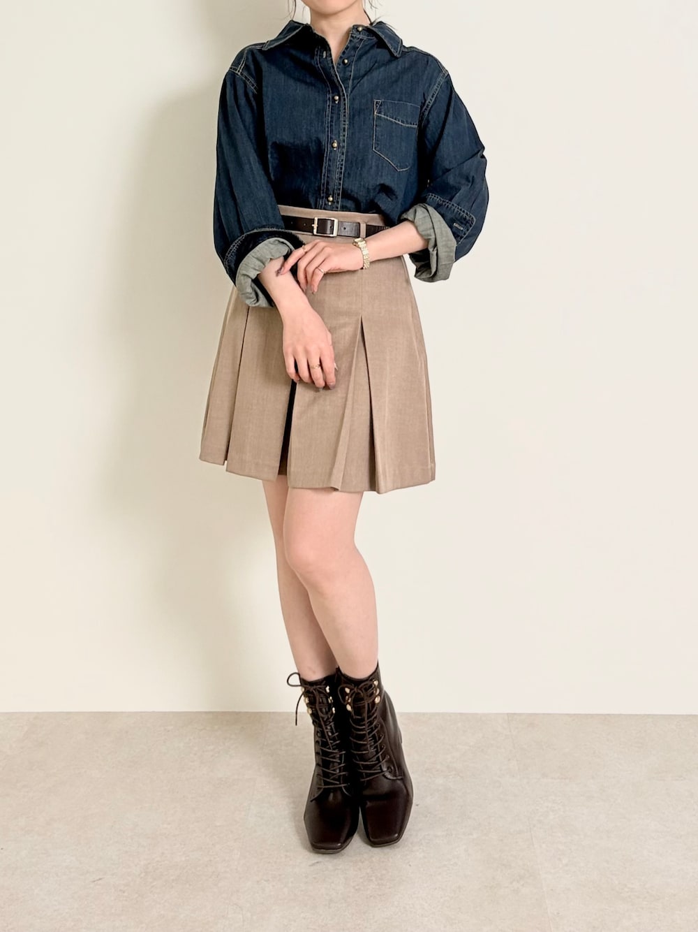 淡色スカパン×デニムシャツ サラッとした素材で 今の時期から長く着れるスカパンです♡ トップスはデニム合わせでインすることで すっきりとした大人コーデが完成! TT618501のジャケットと セットでのお買い物もおすすめです♪