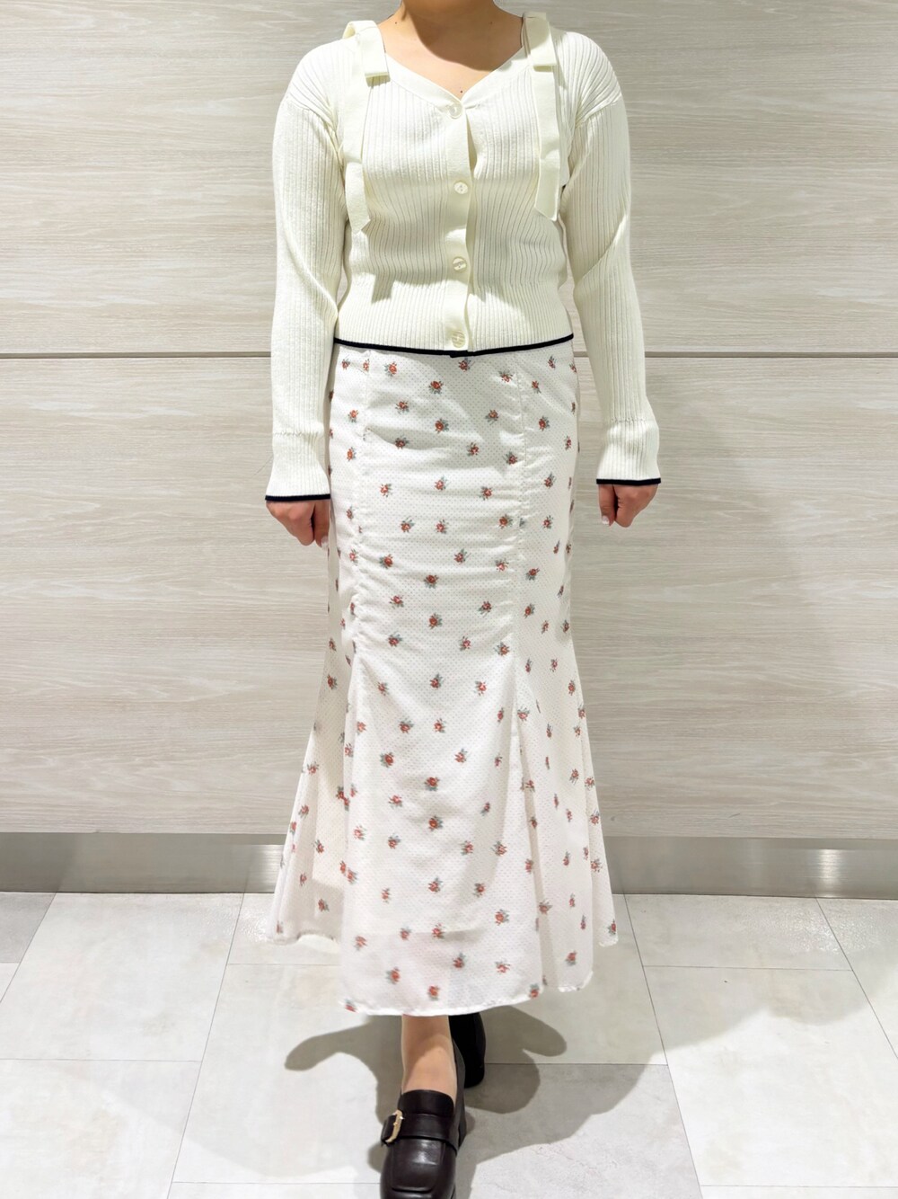 バイカラーがポイントのニット☝🏻 ̖́- スカートはドット柄×花柄で春らしさ全開✨ オフdayにおすすめです!