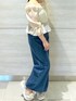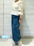 フリルブラウスとデニムパンツ合わせで大人可愛く🪄 ブラウスのペプラムシルエットが女性らしく見せてくれます✨