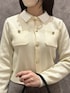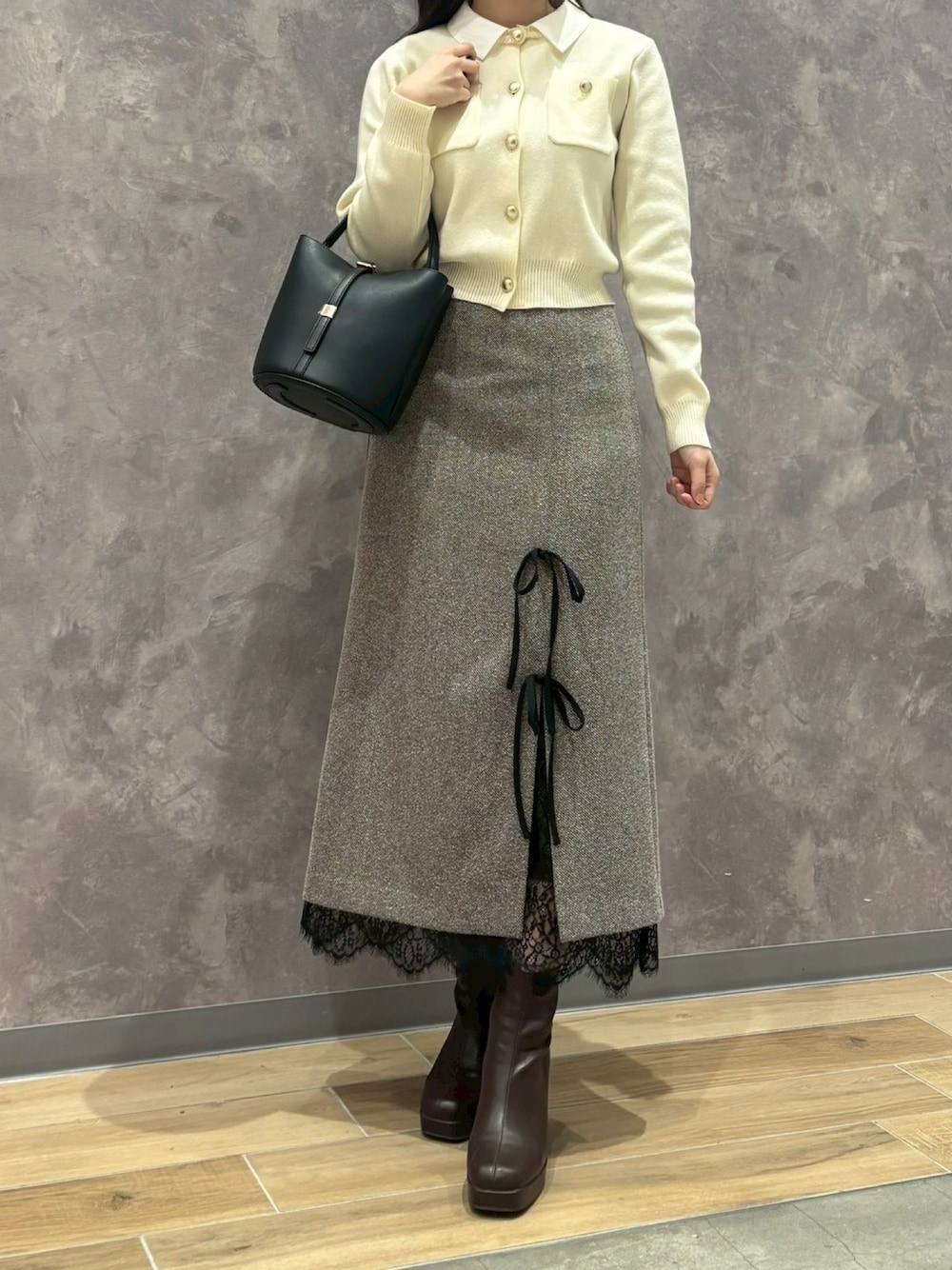 襟を外せばカーディガンにもなるトップスとリボンとレースが可愛いスカートのコーデです♡