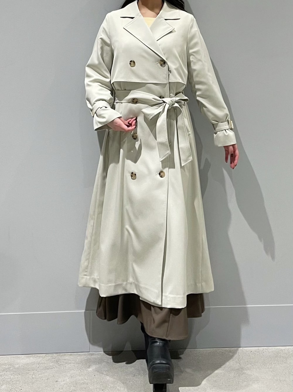 新作トレンチコート🧥です! シンプルで何にでも着まわせできます⚪︎ 裾から見えるブラウンのスカートが可愛い〜!